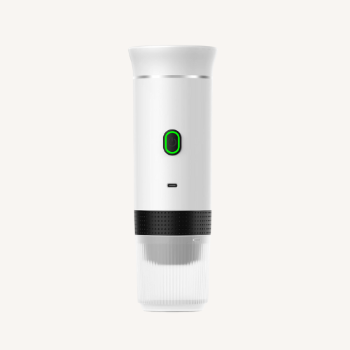 The Oroma Portable Espresso Maker comes in a selection of refined colors that reflect different lifestyles and preferences. Each model maintains the signature cylindrical shape with a luminous ring at the top and a central green power button. Available finishes include matte black, graphite gray, metallic silver, clean white, and forest green. Every color option combines ergonomic design, portability, and premium craftsmanship.