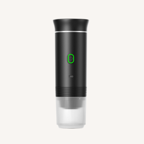 The Oroma Portable Espresso Maker comes in a selection of refined colors that reflect different lifestyles and preferences. Each model maintains the signature cylindrical shape with a luminous ring at the top and a central green power button. Available finishes include matte black, graphite gray, metallic silver, clean white, and forest green. Every color option combines ergonomic design, portability, and premium craftsmanship.
